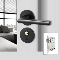 Matt Black Modern Round Lever Door Handle Aluminum Alloy for Bedroom Wooden Doors Apartment Use